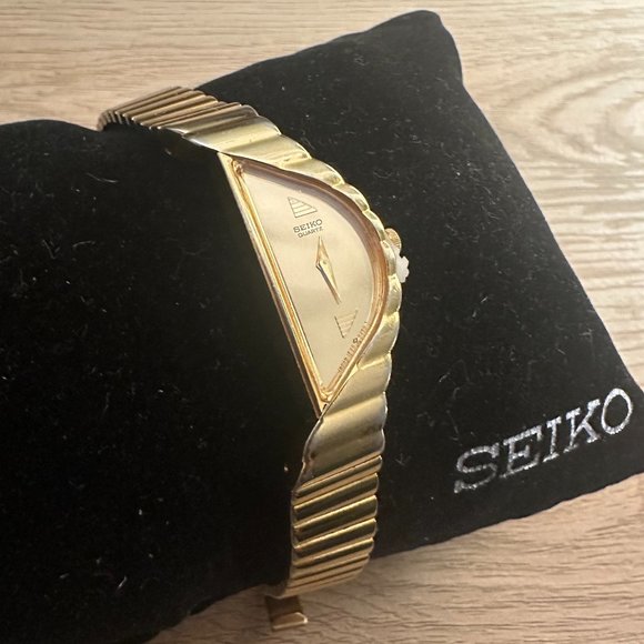Seiko Half Moon Womens Watch 1F20-5D59 Quartz Watch Gold Bracelet I Vintage