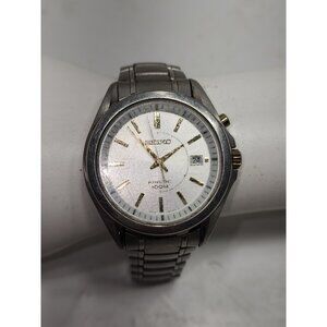 Seiko Mens Kinetic 100m Silver Stainless Water Resistant Date White Quartz Watch