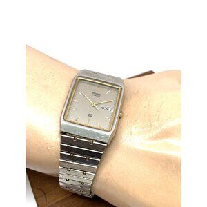 Seiko Men's Watch SQ Quartz Vintage Silver Dial Day Date Two Tone