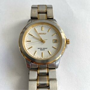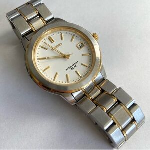 Seiko Men's Watch V742-8119 Two Tone Gold Silver Day Date Quartz Classic Career