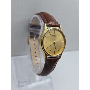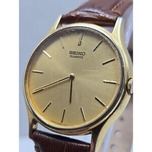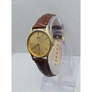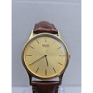 SeikoQuartz, SeikoVintage, SeikoDressWatch, 54200140, 5420Series, QuartzMovement, NewBattery, AnalogWatch, ThreeHand, StickIndexes, GoldTone, ChampagneDial, SlimCase, ThinWatch, 30mmCase, SmallWrist, MensMidsize, UnisexWatch, Vintage1980s, JapanMade, StainlessBack, LeatherBand, BrownStrap, CrocEmbossed, PushPullCrown, FixedBezel, ClassicStyle, MinimalistDesign, DressFormal, EverydayWear, RunningWatch, WorkingCondition, CollectorWatch, RetroStyle