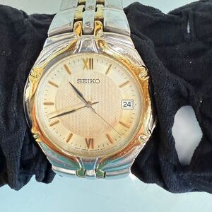 Seiko Quartz 7N42-6C10 Two-Tone Watch Gold Silver Japan EUC 6¾” Wrist
