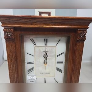 Seiko Radio Controlled Mantle Wood Clock Medium Brown Tone Abalone Insert Ornate