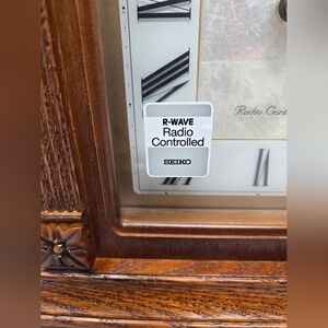 This beautiful Seiko Radio Controlled Mantle Clock is a stunning addition to any home decor. The medium wood tone and ornate design make it a perfect decorative piece for your mantelpiece, shelf, or desk. The clock features an abalone insert, adding an elegant touch to the overall appearance.