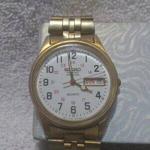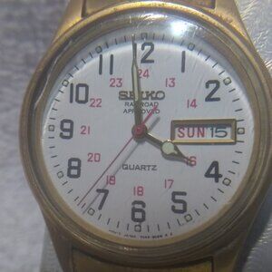 Up for sale is a Seiko Railroad Approved Watch 7N43-8A39 Day Date Bracelet Men New Bat Clear Nice