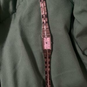Elegant Seiko watch with a sleek silver band. Rectangular face with minimalist design.