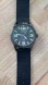 Description: New crystal just installed! Solar powered field watch. Gunmetal gray stainless case. Black dial with day and date windows. Stainless and luminous hands and markers. Black fabric/nylon tactical field strap. Just cleaned and serviced with a new crystal installed. Works well!