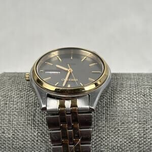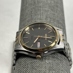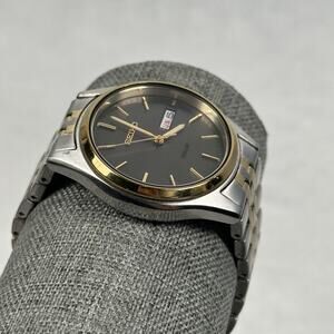 Seiko Solar Watch Mens 37mm Day-Date Two Tone Stainless Steel Black Dial Japan