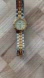 Description: Vintage watch. Beautiful iridescent dial with date window. Two-tone stainless steel bracelet. Gold-tone and luminous hands and markers. Works great! Just serviced with a new battery installed. Works well!
