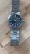 Description: New sapphire crystal just installed! Vintage watch. Beautiful blue dial with stainless and luminous hands and markers. Day and date windows. Titanium case and case back. Titanium color stainless bracelet. Just cleaned and serviced with a new battery and crystal installed. Works well!