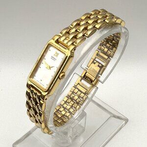 Seiko Vintage 1994 Ladies Petite Gold Tone Rectangular MOP Watch Working