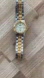Description: Vintage watch. Beautiful iridescent glow in the dark dial with date window. Two-tone stainless steel bracelet. Gold-tone and luminous hands and markers. Just cleaned and serviced with a new battery installed. Works well!