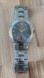 Description: Vintage watch. New crystal just installed! Beautiful gray dial with gold-tone hands and markers. Date window. Two-tone stainless steel bracelet with push-button clasp. Just cleaned and serviced with a new battery and crystal installed. Works well!