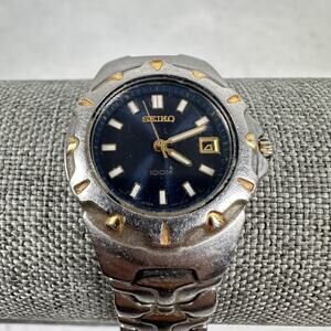 Seiko Watch Womens 26mm Two Tone Blue Dial Date 100M Japan New Battery