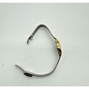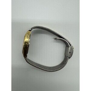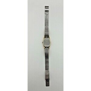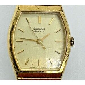 This Seiko wristwatch for women features a stunning gold and silver case with a matching gold bezel. The cream dial beautifully contrasts with the gold and silver colors, while the 12-hour dial and quartz movement ensure accurate timekeeping. The band is also gold, completing the elegant look of this timepiece. Additionally, this watch has been fitted with a new battery and is in excellent working condition. It is a perfect addition to any watch collection and is sure to make a statement on any wrist. Don't miss the chance to own this gorgeous Seiko Quartz watch, model 3421-5030. New Battery. Signs of wear on band, case, and crystal. Works as intended.