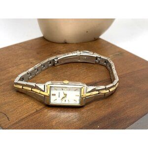 Seiko Women's Watch SWR044 Quartz Petite Tank Rectangle White Dial Two Tone Stainless Steel $295 (AY7308Y)