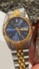 Elegant Seiko watch. Blue dial with gold accents. Gold and silver two-tone band. Perfect for any occasion. It has some scratches. Rarely worn. No smoke no pets. It runs well and keeps the date and the day. You can watch the video. I can ship today! Ask any questions you have!