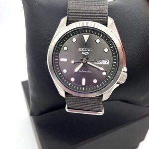 Seiko 5 Sports SRPE61 40 mm Steel Gray Dial Day Date Nylon Automatic Men's Watch. New with tags, display model. No original box. A nylon nato strap perfectly matches the gray dial of this rugged automatic 5 Sports timepiece by Seiko.