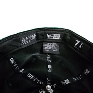 Celebrate Festivus for the Rest of Us! with this rare Seinfeld x New Era 59FIFTY fitted hat, featuring a rich green velvet exterior, bold embroidered Festivus logo on the front, “Seinfeld” embroidery on the side, and the classic red New Era flag.