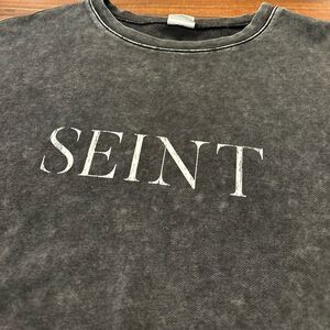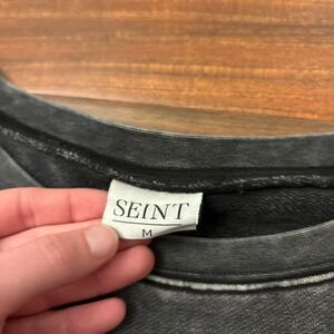 Seint Beauty Grey Crewneck Sweatshirt. Small mark on right cuff (shown in last photo). armpit to armpit 24 inches. Length 21 1/2 inches. 100% cotton. Size medium. Good condition!