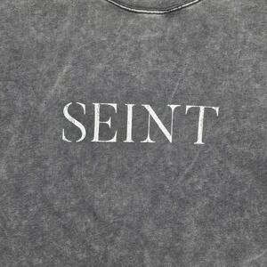 Elevate your off-duty rotation with this effortlessly cool Seint crewneck, where minimalist branding meets lived-in luxury. The faded charcoal stonewash cotton-blend drapes with a soft, vintage-inspired texture, while the bold "SEINT" logo adds a subtle nod to beauty-brand edge.