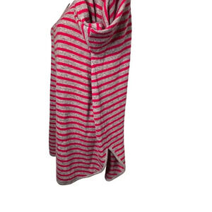 Sejour 2X, pink gray stripe cashmere wool blend Long sleeve rounded high low hem