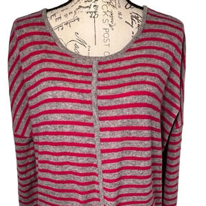 Sejour 2X, pink gray stripe cashmere wool blend Scoop Neck Long sleeve rounded high low hem lightweight sweater.