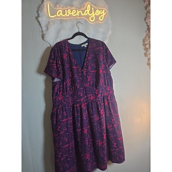 Sejour A-line Shirt Dress Plus 22W Blue Neon Pink Graffiti Office Casual Pockets