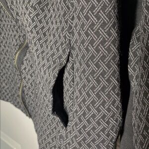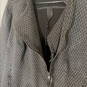Sejour Black & Gray Stitch Design Zip Up Asymmetrical Blazer Side Pockets | 18W