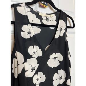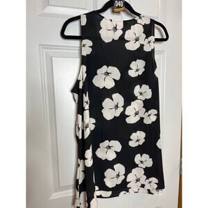 Sejour Black and White Floral Print V Neck Sleeveless Shirt Plus Size 1X