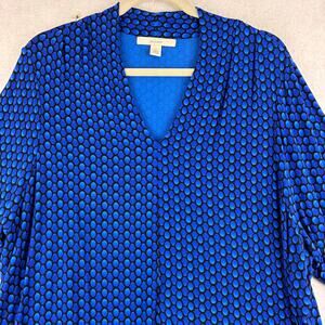 Sejour Short Sleeve Tunic Top Women's 2X Blue Geomectric Print Super Soft Cobalt