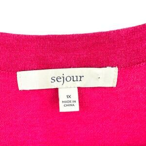 Sejour Size 1X Sweater Red Short Sleeve Button Up Front Pockets Summer Coverup