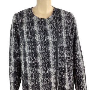 Sejour Snake Print Textured Jacket Size 18W Black Lined Zip Up