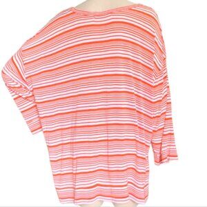 Sejour Stretch Knit Striped Top Plus Sz 3X Orange & White #112B