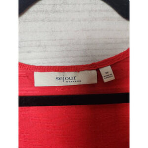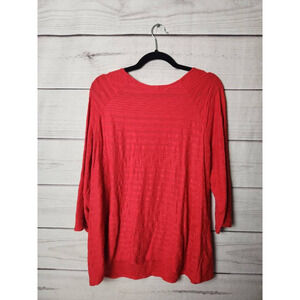 Sejour Womens Casual Top Red Stretch Stripe 3/4 Sleeve Scoop Neck Shirt Plus 3X