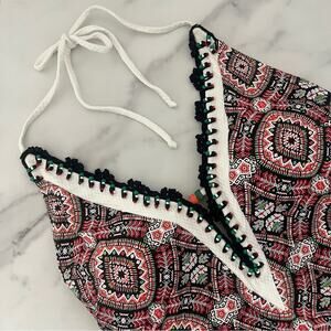 Tags: Resort wear, Boho chic, Bohemian, Beach vacation, Anthropologie, Beach getaway, Maximalist, Ikat print, tie back one piece swimsuit, Spell and the gipsy Collective similar style, cruise vacation getaway.