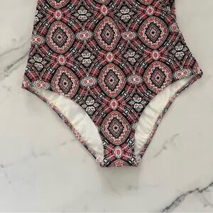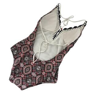 Seki One Piece Swimsuit plunging beaded neckline abstract print beach summer M