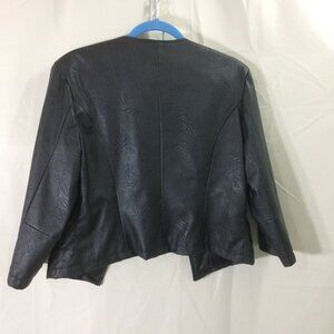 Sele Faux Leather Jacket Short Studded Lapels Open Front Black Lined Size L/XL