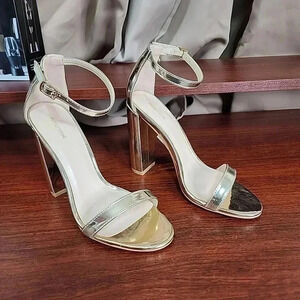 Pretty little thing gold metallic heels. Size 4 Preloved in excellent condition 5" heel