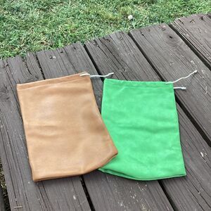 Select Club Whisky drawstring bags lot of 2 – tan & green Apple, 12”x8”