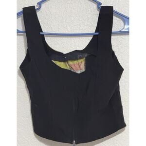 Select Cropped Tank Top Silky Floral Decor Gold Black Size 16