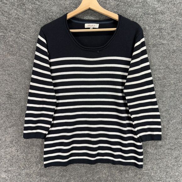 Select Sweater Pullover Women S Small Black Striped Knit Long Sleeve Cotton