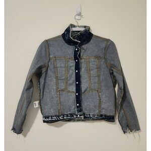 Select Womens Acid-Wash Denim Jacket Distressed Blue Streetwear UK12/US 8