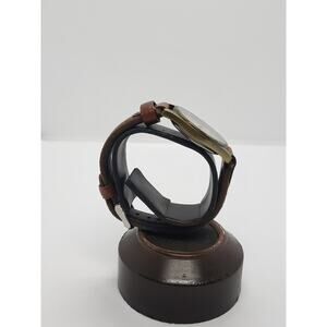 Select women's watch. Large face with glow in the dark hands and purple numbers. Brown adjustable band, 7 inch. Needs battery replacement.