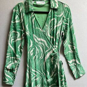 Selected Femme Long-Sleeve Marble-Print Midi Wrap Dress Sz 38/ 8