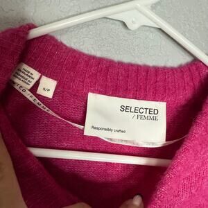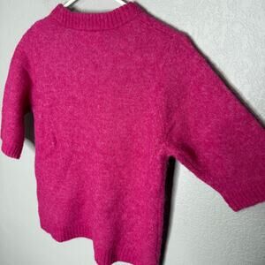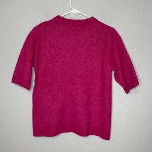 Anthropologie Selected Femme Short Sleeved Wool Alpaca Blend Top Magenta