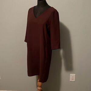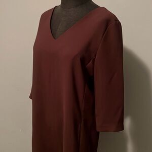 Selected Femme Women's Burgundy V Neck Quarter Sleeve Shift Dress Size 34