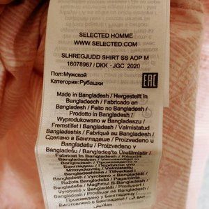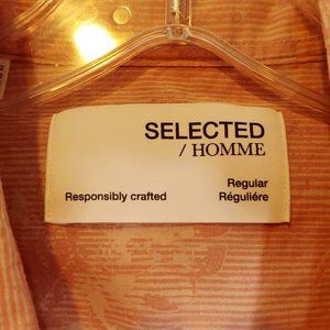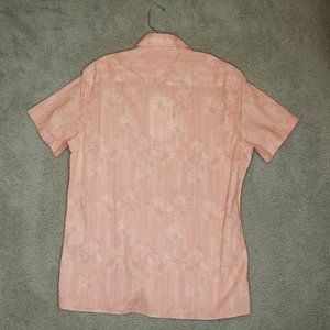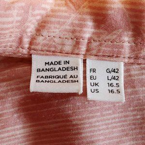 Selected Homme Mens Button Front Shirt Pink Striped Leaves Short Sleeve 16.5 New