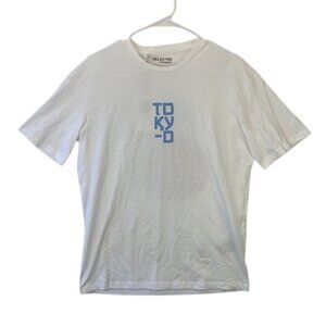 Selected Homme Mens S White Oversized T-Shirt Cotton Dragon Back Graphic Tee NWT