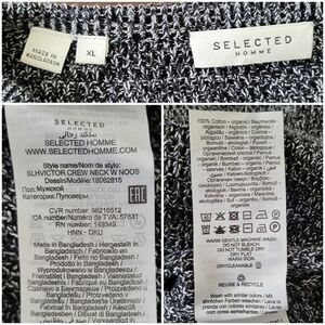Selected Homme Men's XL Victor Crew Neck Organic Cotton Knit Sweater Black Gray